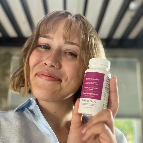 Experience the transformative power of our Biotin Complex, a symphony of Biotin, Selenium, and Zinc, meticulously designed to nourish your hair, nails, and skin from within. This nutrient-rich blend delivers concentrated doses of essential minerals and vitamins that work in synergy to support healthy hair, nails and skin, optimal immune function, a healthy carbohydrate and fatty acid metabolism, and more.